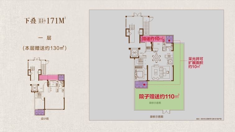 下疊戶型鑒賞: 大空間:高附贈(zèng)率成就奢闊質(zhì)感 約5.5米地下室:地下一層可隔成雙層空間,打造影音室、健身房或酒窖等功能,實(shí)現(xiàn)“買一層得兩層”的空間拓展。 客餐廳挑空:贈(zèng)送約63m²空間,可改造為套房或親子活動(dòng)區(qū),立體延伸多重生活場域。 大寬景:有天有地勾勒環(huán)幕視野 庭院與拓展雙加持:首層拓展空間,可規(guī)劃入戶玄關(guān)或休閑區(qū)。最大約80㎡花園贈(zèng)送,形成“室內(nèi)活動(dòng)區(qū)+戶外花園”的社交場景閉環(huán)。 開間尺度與視野:南向三開間設(shè)計(jì),約6.5米橫廳連接室外花園,引景入室,實(shí)現(xiàn)“庭院-客廳-餐廳”的通透動(dòng)線。 大格局:縱向分層突破平面想象 上下分層設(shè)計(jì):疊加產(chǎn)品功能分層,安靜不受打擾;地下室、一樓作為活動(dòng)區(qū),滿足親友宴請、休閑娛樂等功能應(yīng)用;二樓作為獨(dú)立起居空間,形成“下層社交、上層宜居”的分層生活。