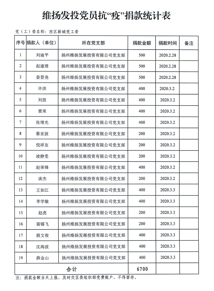 為積極響應(yīng)區(qū)委、區(qū)政府號召,表達(dá)公司黨員職工對疫情防控工作的堅定支持。3月3日下午,由公司黨支部牽頭,組織黨員干部、普通職工以及相關(guān)合作單位開展自愿捐款活動,支持疫情防控。 公司黨支部書記、副董事長劉迪平首先發(fā)起捐款倡議,“黨有號召,我有行動”。班子成員緊隨其后,黨員職工及合作企業(yè)紛紛響應(yīng),踴躍捐款,用點滴愛心集聚起支援疫情防控的強(qiáng)大正能量。 涓流不吝,以成江河。截止目前,公司黨支部一共向邗江區(qū)委組織部賬戶匯入黨員抗疫特殊黨費6700元。公司員工及合作單位也籌集了13400元的抗疫愛心捐款,匯款至邗江區(qū)紅十字會。 疫情期間,我公司全體黨員干部職工,以實際行動為疫情防控盡一份心意,詮釋了共產(chǎn)黨員和國企人的初心本色。